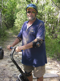 At last we are out of the boatyard but not quite in a state for cruising so we high tail across to Royal Langkawi Yacht Club. Dave and Anne have been slumming it for the last few days in a flash resort just up the road from the Yacht Club and stay on one more night until we get ourselves sorted enough to have them aboard. Then with four of us chipping in we soon had some resemblance of order so we rewarded ourselves with a day trip around Langkawi to see some of the sights and to visit out favourite tiger prawn restaurant for lunch. While Anne and I opted for a leisurely gondola ride up to the hilltop Dave and Daryl chose to entertain themselves on some sedways. After a practice run Daryl proclaimed that the way they had been designed meant you couldn’t fall off them. He hadn’t however allowed for a large jutting rock on the track!!!! And yes, fall off he did, with more injury to the pride than the body, I think.